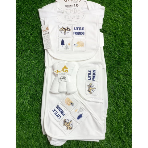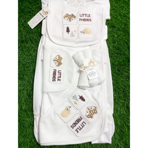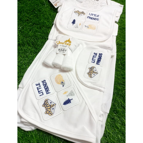Product Details: Material: 100% Soft Cotton Age Suitability: 0 to 3 Months (Approx.) Contents of the Set: T. Shirt Trouser Bib Cap Pair of Booties 3 Face Towels Wrapping Sheet Hanger Additional...