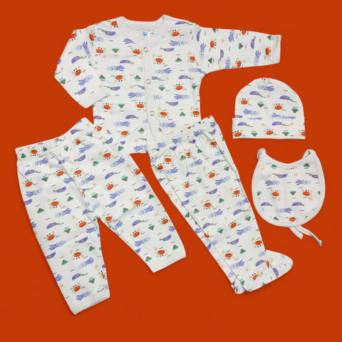 Stuff - 100% Soft Cotton Age Suitability - Newborn Contains : 1 : Bib 2 : Full Sleeves Buttoned Shirt (Length 10 * Width 9 Inches) 3 : Cap 4 : Open Feet Trouser (Length 12 Inches) 5...