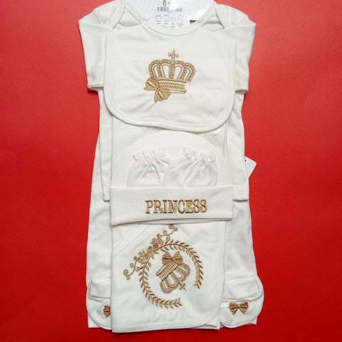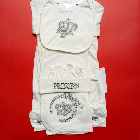 Product Details: Material: Cotton Age Suitability: 0 to 3 Months (Approx.) Contents of the Set: Shirt Trouser Bib Cap Mittens Wrapping Sheet Hanger Additional Information: Suitable for 4 Season Made in Pakistan...