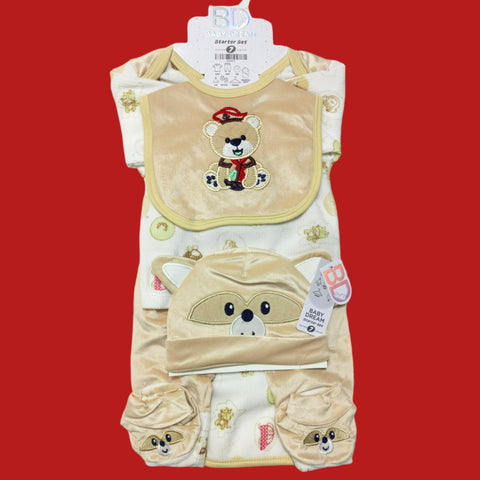 Product Details: Material: Velvet ( Fleece ) Age Suitability: 0 to 3 Months (Approx.) Contents of the Set: Shirt Trouser Bib Cap Booties Wrapping Sheet Hanger Additional Information: Suitable for Winter Made...
