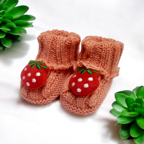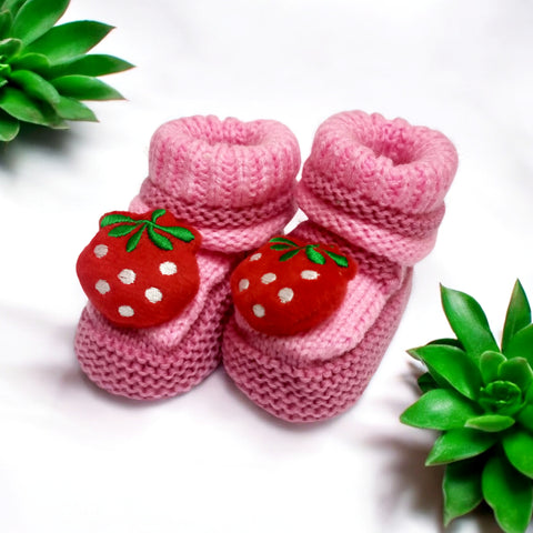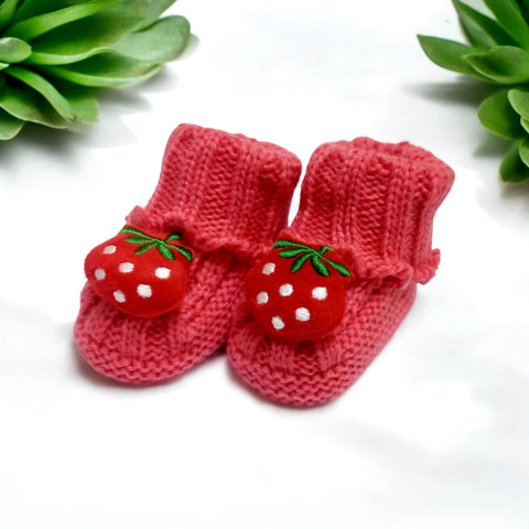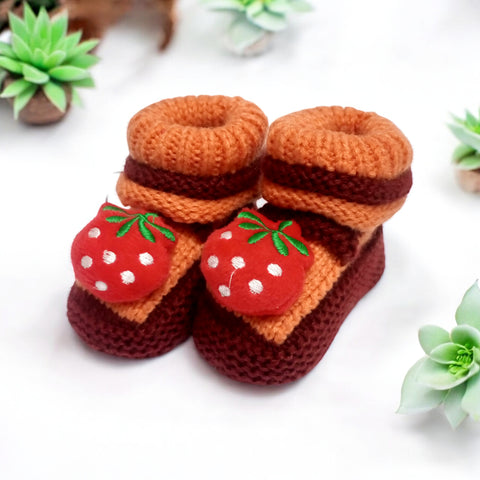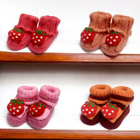 knitted baby booties designed for infants. Made from soft, cozy material for warmth and comfort. High ankle cuffs for a secure fit and ease of wear. Ideal for keeping baby...
