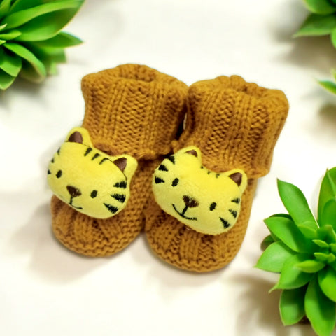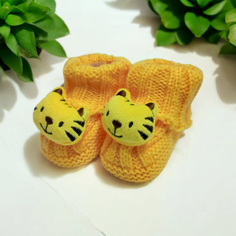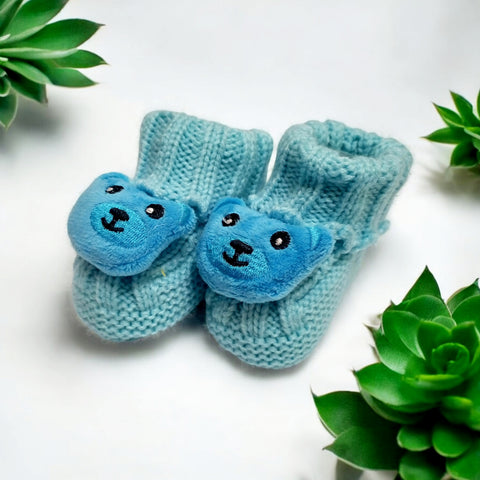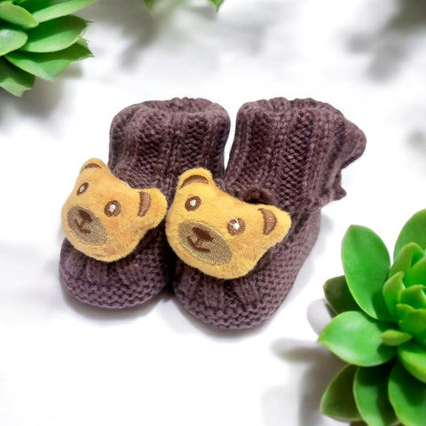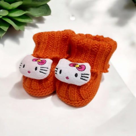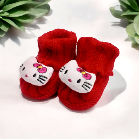 knitted baby booties designed for infants. Made from soft, cozy material for warmth and comfort. High ankle cuffs for a secure fit and ease of wear. Ideal for keeping baby...