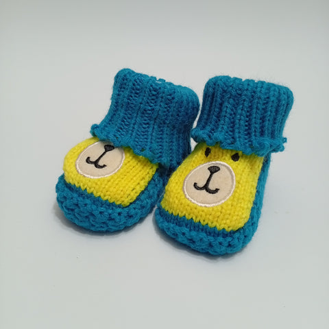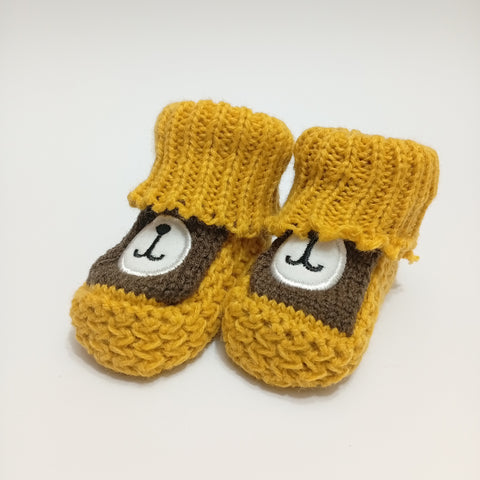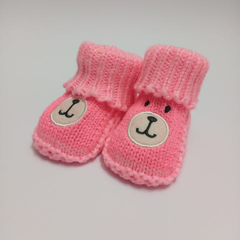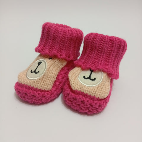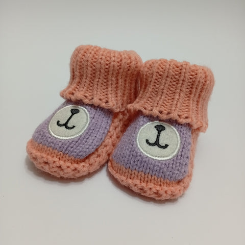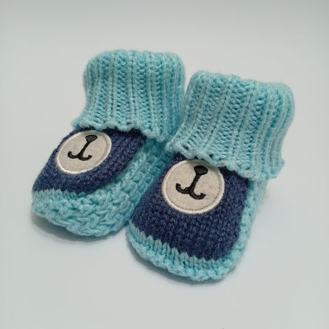 knitted baby booties designed for infants. Made from soft, cozy material for warmth and comfort. High ankle cuffs for a secure fit and ease of wear. Ideal for keeping baby...
