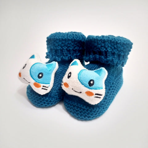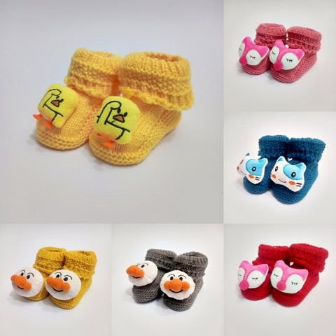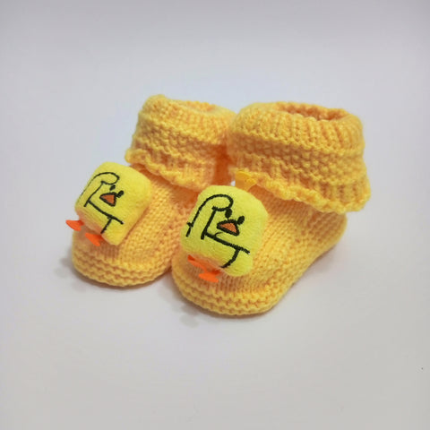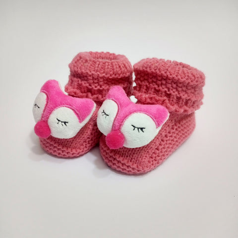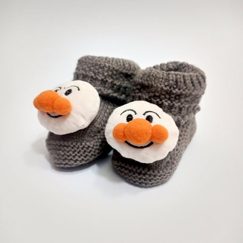 knitted baby booties designed for infants. Made from soft, cozy material for warmth and comfort. High ankle cuffs for a secure fit and ease of wear. Ideal for keeping baby...