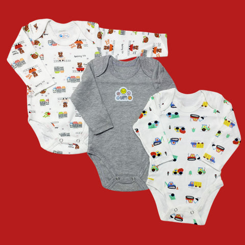 Pack of 3 Long Sleeve Bodysuits - Gray
