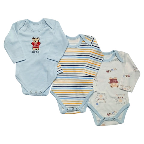 Pack of 3 Long Sleeve Bodysuits - Blue Bear