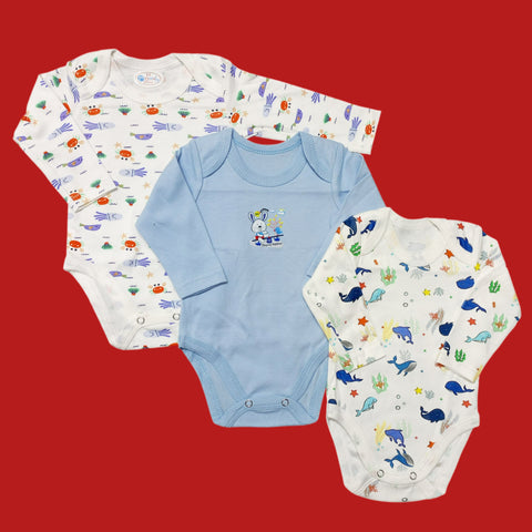 Pack of 3 Long Sleeve Bodysuits - Blue