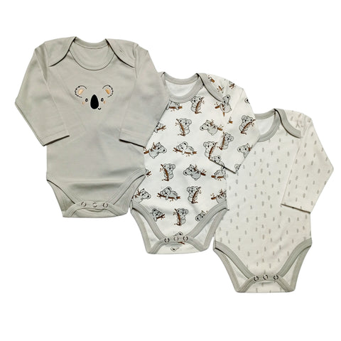 Pack of 3 Long Sleeve Bodysuits - Gray