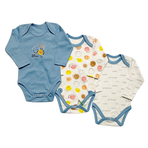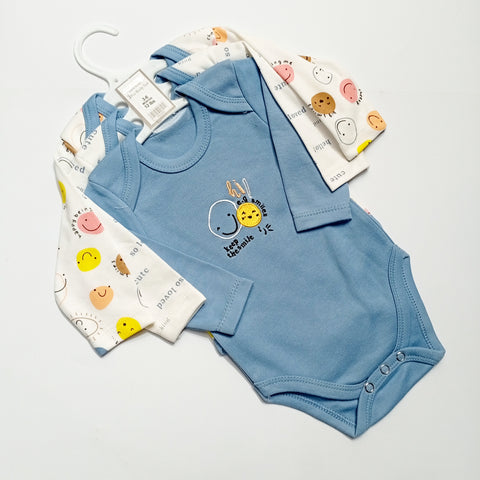 Pack of 3 Long Sleeve Bodysuits - Smiley